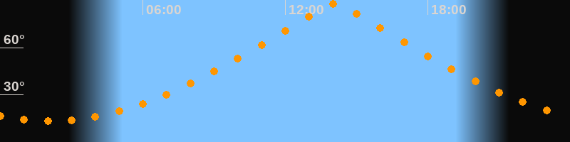 | Höchster Stand (Kulmination) | 14:05 Uhr (h = 88,1°) |