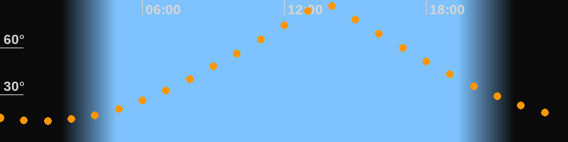 | Höchster Stand (Kulmination) | 13:41 Uhr (h = 88,1°) |