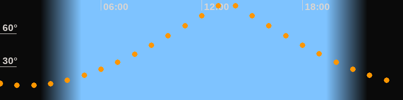 | Höchster Stand (Kulmination) | 13:30 Uhr (h = 88,1°) |