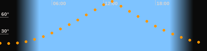 | Höchster Stand (Kulmination) | 12:50 Uhr (h = 88,1°) |