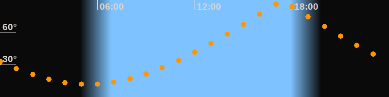 | Höchster Stand (Kulmination) | 17:23 Uhr (h = 89,4°) |