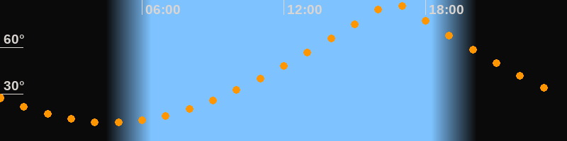 | Höchster Stand (Kulmination) | 16:36 Uhr (h = 89,4°) |
