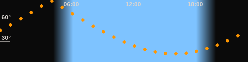 | Höchster Stand (Kulmination) | 04:53 Uhr (h = 89,4°) |