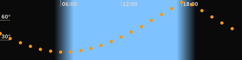 | Höchster Stand (Kulmination) | 18:18 Uhr (h = 89,4°) |