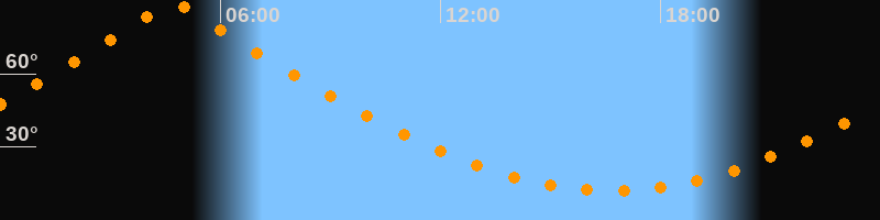 | Höchster Stand (Kulmination) | 04:42 Uhr (h = 89,4°) |