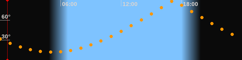 | Höchster Stand (Kulmination) | 17:11 Uhr (h = 89,4°) |