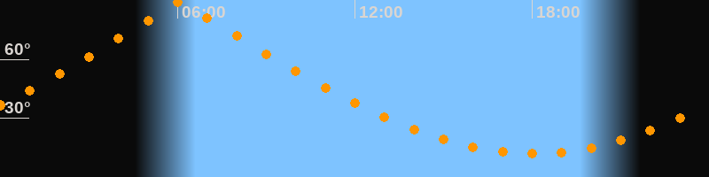 | Höchster Stand (Kulmination) | 06:04 Uhr (h = 89,4°) |