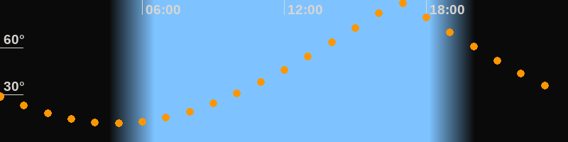 | Höchster Stand (Kulmination) | 16:50 Uhr (h = 89,4°) |