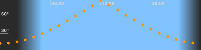 | Höchster Stand (Kulmination) | 12:04 Uhr (h = 89,4°) |