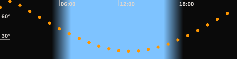 | Höchster Stand (Kulmination) | 01:11 Uhr (h = 89,4°) |