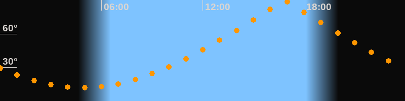 | Höchster Stand (Kulmination) | 16:52 Uhr (h = 89,4°) |