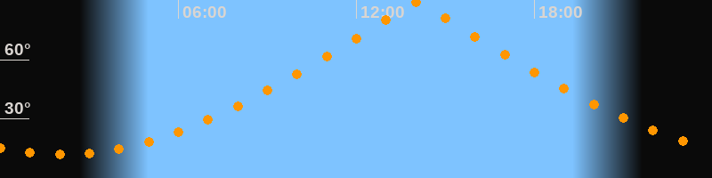 | Höchster Stand (Kulmination) | 14:03 Uhr (h = 89,4°) |