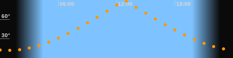 | Höchster Stand (Kulmination) | 12:49 Uhr (h = 89,4°) |