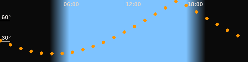 | Höchster Stand (Kulmination) | 17:10 Uhr (h = 89,4°) |