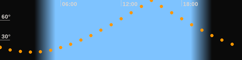 | Höchster Stand (Kulmination) | 15:00 Uhr (h = 89,4°) |