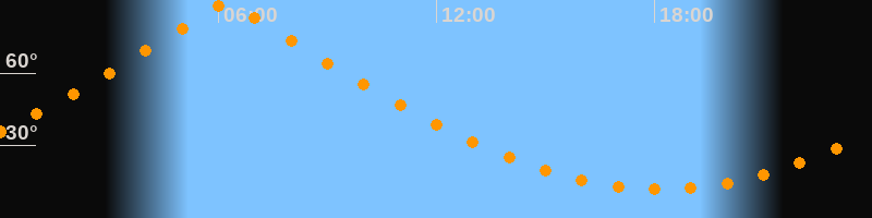 | Höchster Stand (Kulmination) | 06:13 Uhr (h = 89,4°) |