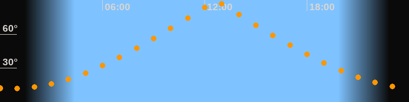 | Höchster Stand (Kulmination) | 12:39 Uhr (h = 89,4°) |