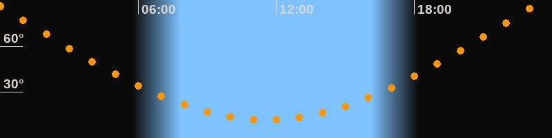 | Höchster Stand (Kulmination) | 23:33 Uhr (h = 89,4°) |