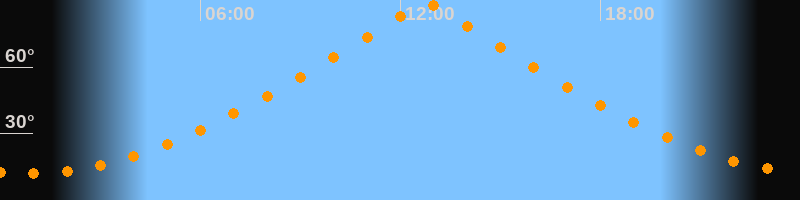 | Höchster Stand (Kulmination) | 12:44 Uhr (h = 89,4°) |