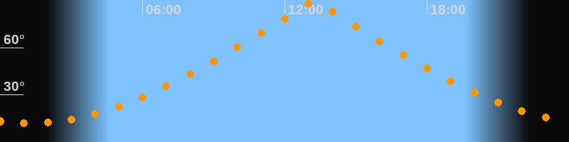 | Höchster Stand (Kulmination) | 13:13 Uhr (h = 89,4°) |