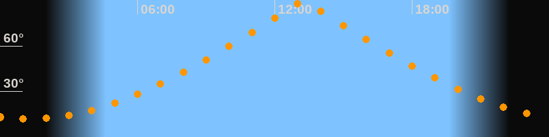 | Höchster Stand (Kulmination) | 13:15 Uhr (h = 89,4°) |