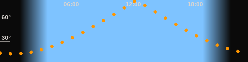 | Höchster Stand (Kulmination) | 13:11 Uhr (h = 89,4°) |