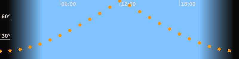 | Höchster Stand (Kulmination) | 12:08 Uhr (h = 89,4°) |