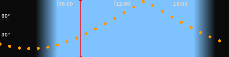 | Höchster Stand (Kulmination) | 15:08 Uhr (h = 88,1°) |
