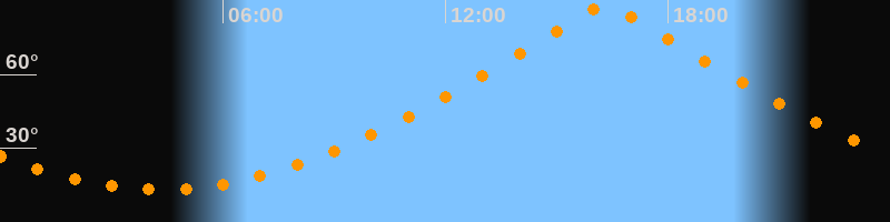 | Höchster Stand (Kulmination) | 16:19 Uhr (h = 88,1°) |