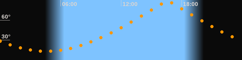 | Höchster Stand (Kulmination) | 16:35 Uhr (h = 88,1°) |