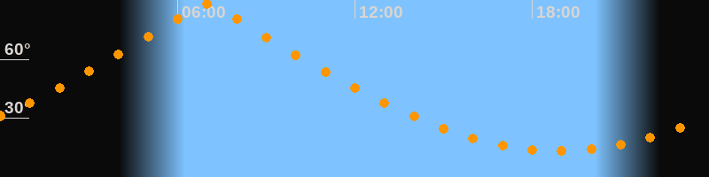 | Höchster Stand (Kulmination) | 06:58 Uhr (h = 88,1°) |