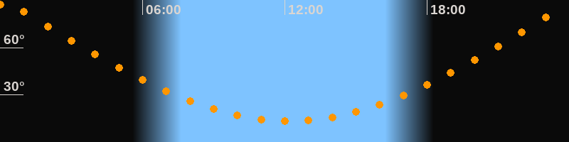 | Höchster Stand (Kulmination) | 00:09 Uhr (h = 88,1°) |