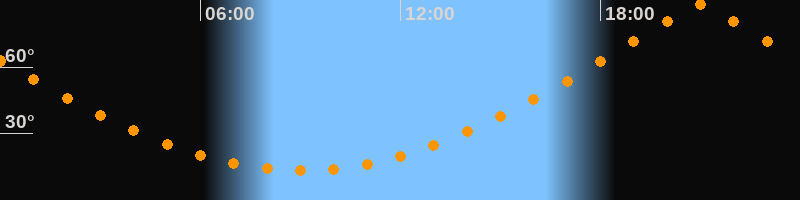| Höchster Stand (Kulmination) | 21:00 Uhr (h = 88,1°) |