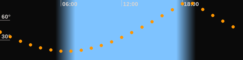 | Höchster Stand (Kulmination) | 18:31 Uhr (h = 88,1°) |