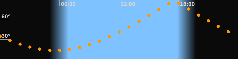 | Höchster Stand (Kulmination) | 17:32 Uhr (h = 88,1°) |