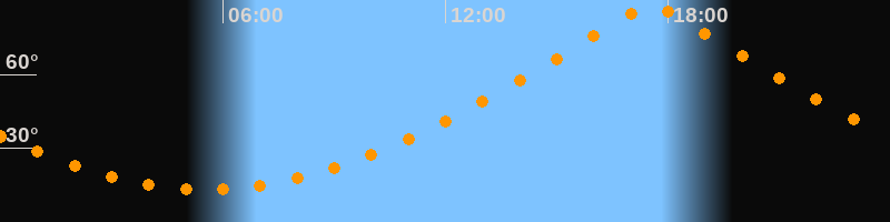 Höchster Stand (Kulmination)17:33 Uhr (h = 88,1°)