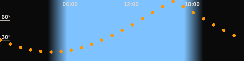 | Höchster Stand (Kulmination) | 17:00 Uhr (h = 88,1°) |