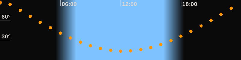 | Höchster Stand (Kulmination) | 00:17 Uhr (h = 88,1°) |