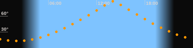 | Höchster Stand (Kulmination) | 14:03 Uhr (h = 88,1°) |