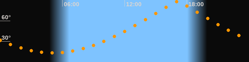 | Höchster Stand (Kulmination) | 17:05 Uhr (h = 88,1°) |