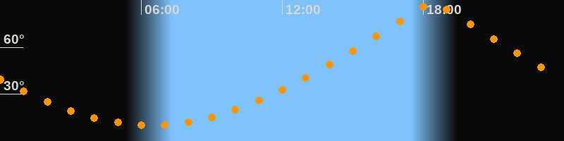 | Höchster Stand (Kulmination) | 18:24 Uhr (h = 88,8°) |