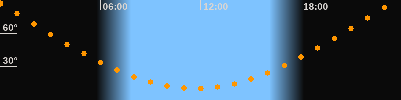 | Höchster Stand (Kulmination) | 23:40 Uhr (h = 88,8°) |