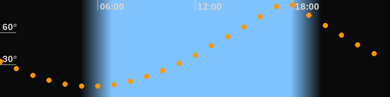 | Höchster Stand (Kulmination) | 17:34 Uhr (h = 88,8°) |