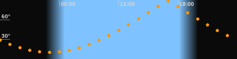 | Höchster Stand (Kulmination) | 16:59 Uhr (h = 88,8°) |