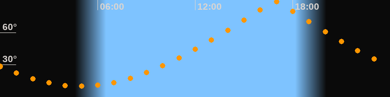 | Höchster Stand (Kulmination) | 16:55 Uhr (h = 88,8°) |