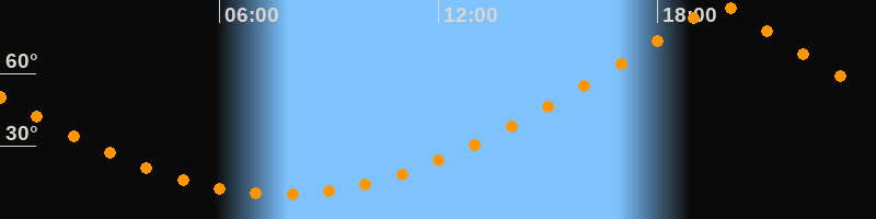 | Höchster Stand (Kulmination) | 19:43 Uhr (h = 88,8°) |