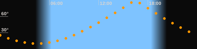 | Höchster Stand (Kulmination) | 16:26 Uhr (h = 88,8°) |