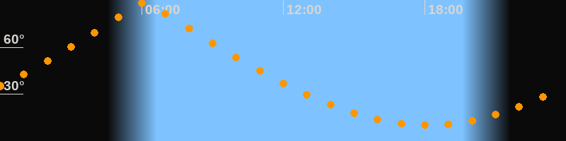 | Höchster Stand (Kulmination) | 06:08 Uhr (h = 88,8°) |