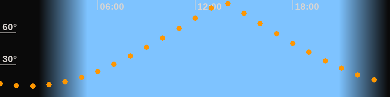 | Höchster Stand (Kulmination) | 13:43 Uhr (h = 88,8°) |