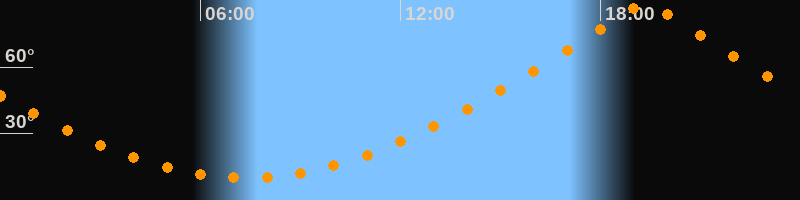 | Höchster Stand (Kulmination) | 19:21 Uhr (h = 88,8°) |